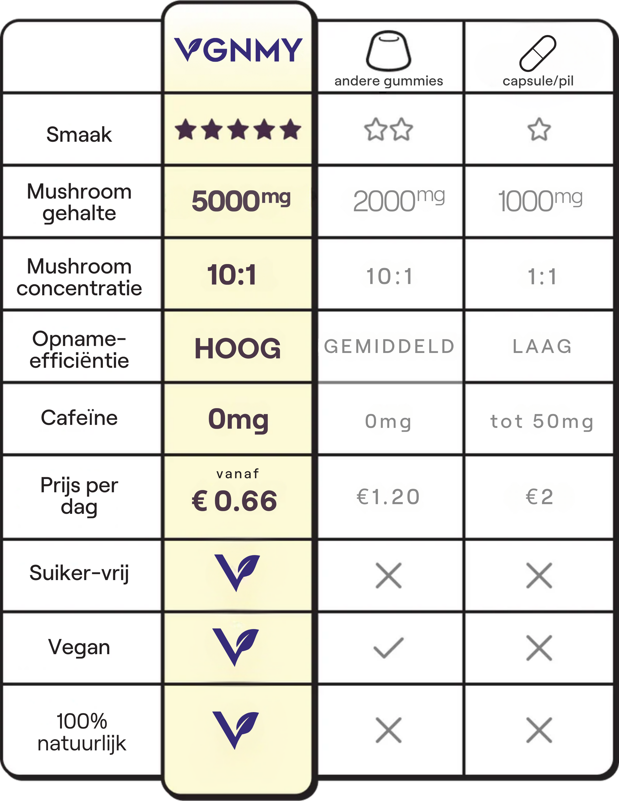 Entdecken Sie die Vitamin-Gummibärchen von VGNMY, hergestellt aus sorgfältig ausgewählten Zutaten. Diese Gummibärchen enthalten eine Mischung aus sechs Pilzextrakten und sind frei von Zuckerzusatz und gentechnisch veränderten Organismen (GVO).