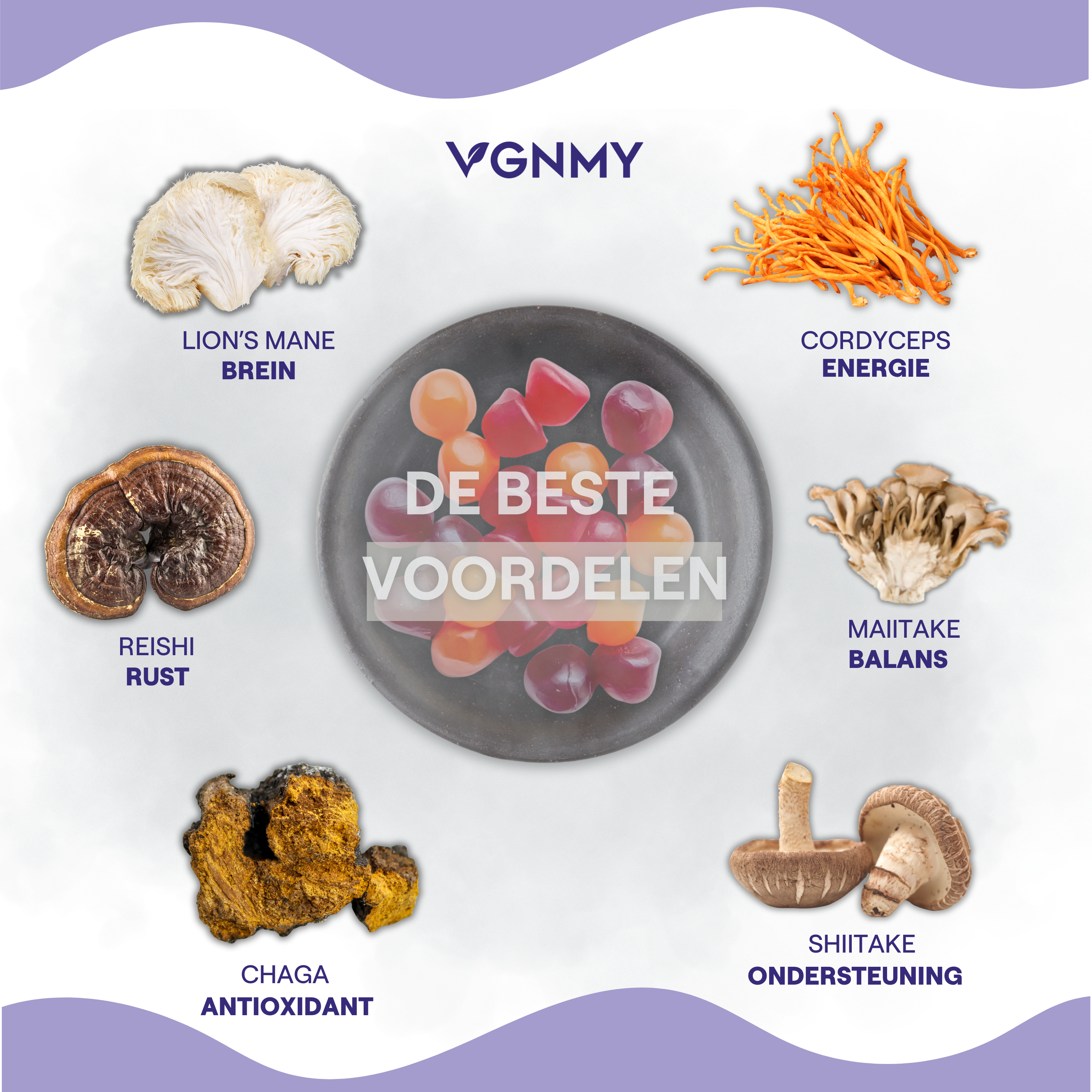 Entdecken Sie die Welt der funktionellen Pilzgummibärchen : weich , lecker und einfach einzunehmen. Angereichert mit Bio-Heidelbeergeschmack und komplett zuckerfrei, vegan und halal .